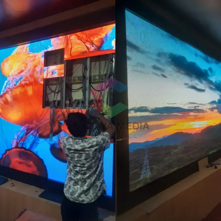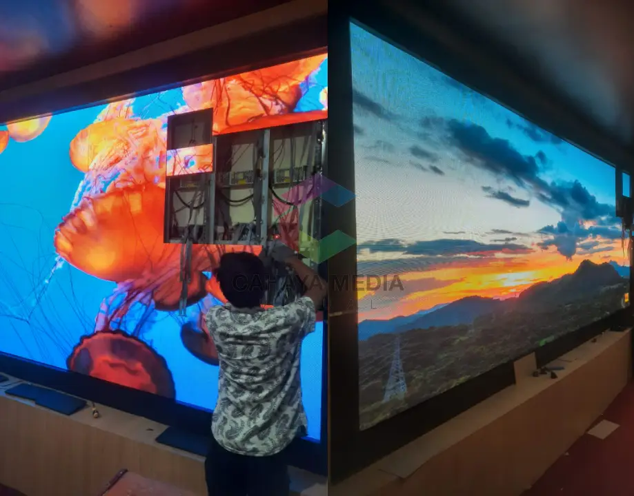 Videotron indoor adalah layar LED modular yang dirancang khusus untuk digunakan di dalam ruangan. Layar ini memberikan gambar yang lebih tajam dan cerah dibandingkan proyektor atau layar konvensional, dan dapat dioperasikan dengan mudah tanpa terganggu oleh pencahayaan ruangan. Videotron Indoor bisa dipasang di berbagai lokasi dalam ruangan yang strategis dan banyak dilalui orang. Videotron Indoor biasanya dipasang di dinding, berdiri sebagai panel di dalam ruangan, atau sebagai backdrop dalam event, karena memiliki kecerahan lebih rendah dan material yang tidak tahan terhadap panas dan hujan seperti videotron outdoor. Secara umum harga videotron indoor lebih beragam bergantung pada paket dan jenis modul yang digunakan. Untuk harga paket biasanya mulai puluhan juta per meter dan ada juga paket siap pakai sampai ratusan juta rupiah. Sedangkan paket harga videotron outdoor dihargai per meter persegi dengan kisaran puluhan juta per meter persegi tergantung pixel pitch dan ukuran total layar, jadi sama halnya dengan harga videotron indoor. Harga diatas adalah harga update pasaran Indonesia tahun 2025 dan ada kemungkinan jika harga naik atau turun. Untuk pembelian bisa lebih variatif dengan adanya pemasangan, tiang atau rangka dan jasa instalasi yang sering termasuk dalam paket outdoor. Jika Anda ingin tahu perkiraan harga sekarang, Anda bisa langsung menghubungi marketing kami jadi silahkan informasikan ukuran dan tipe modul yang diinginkan, kami akan segera membuatkan penawaran harga videotron yang Anda butuhkan.
