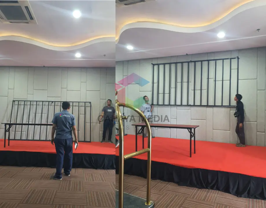Layar sebesar ini biasanya digunakan di ruang indoor seperti aula atau studio, di mana penonton dapat melihat dari jarak menengah ke jauh (3-8 meter), sehingga tampilan videotron tetap optimal dan tidak membuat mata cepat lelah. Jarak lebih dekat dari itu bisa membuat mata merasa lelah karena harus bergerak melihat seluruh layar yang besar, apalagi jika resolusi tinggi dengan refresh rate 1920Hz yang membuat detail tampak sangat jelas.